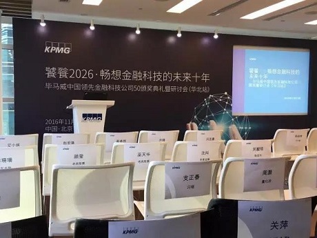 2016年11月22日,饕餮2026 · 暢想金融科技的未來(lái)十年——畢馬威中國(guó)領(lǐng)先金融科技公司50頒獎(jiǎng)典禮暨研討會(huì)(華北站)在北京畢馬威創(chuàng)新創(chuàng)業(yè)共享中心舉辦。